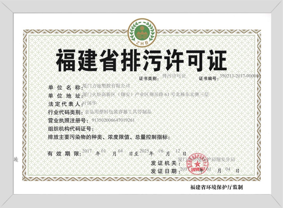 2016通過福建省排污許可認(rèn)證